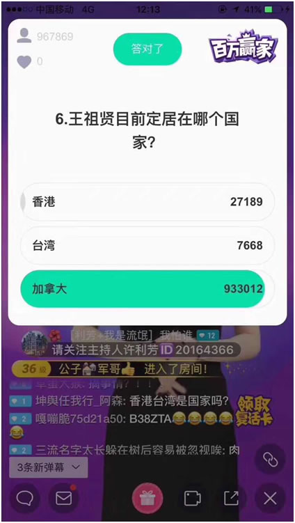 题目中公然将我国的“香港”和“台湾”与“加拿大”并列为国家供用户进行选择,公然践踏我们国家的尊严,公然将来之不易的“主权和领土完整”作为一句空话抛之脑后,如此娱乐未免太过火了些。这样数典忘祖的题目答对又有何光荣?即便赢钱也是一种耻辱!