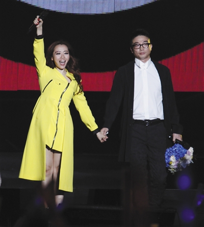 去年,冯轲在张靓颖成都演唱会上向她求婚。